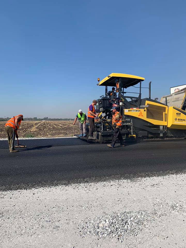 Укладати новий асфальт почали з боку Кривого Рогу. Вже понад 2 км дороги – із верхнім шаром покриття.