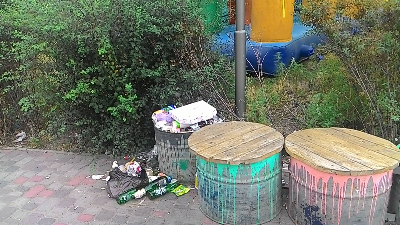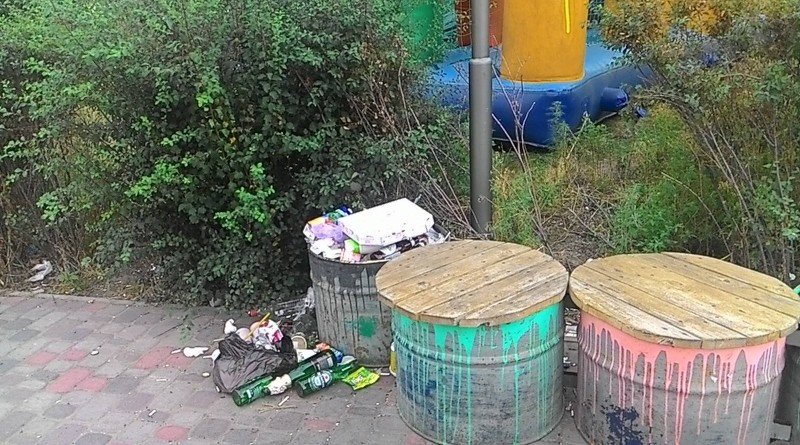 «Что-то случилось с территорией возле ТРЦ «Коммунар» Куда обращаться?», – вопрошает днепрянка Александра Трегулова, иллюстрируя свой вопрос фотографиями, где изображены переполненные мусорные баки, множество пустых бутылок и сломанные лавочки.