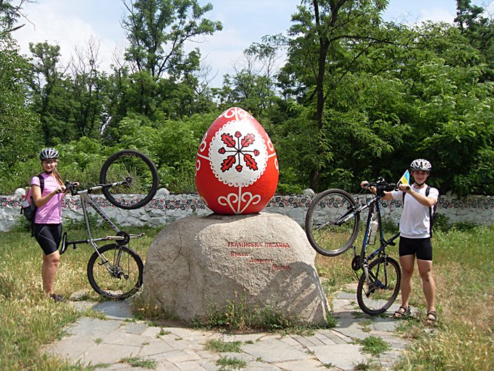 На Хортице – около десяти поселков, есть и многоэтажки. По асфальтированным дорогам курсируют маршрутные такси, работают магазины и даже драмтеатр. Мы проезжали мимо школы, рядом с которой на спортплощадке детвора гоняла мяч. На выезде сфотографировались еще и с узнаваемым символом острова – полутораметровой скульптурой пасхального яйца – памятником Украинской писанке.