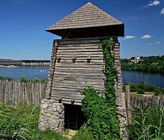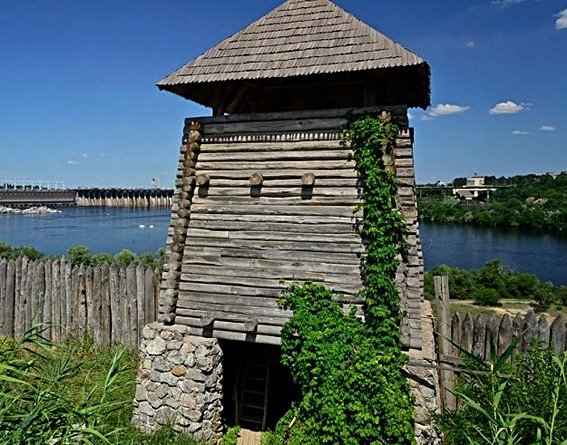 Проезжаем мимо конюшен и огороженного высоким частоколом конного театра, деревянной ветряной мельницы, музея под открытым небом «Скифский Стан». Там собрано большое количество исторических памяток с территории всей Запорожской области. Среди них – скифские каменные «бабы» и казацкие кресты, антропо­морфные стелы, жернова. Неподалеку – собрание каменных скульптур и их фрагментов разных эпох. Рассмотрели старинные ступы, зернотерки, корыта… Забрались и на реконструированную смотровую вышку, которая во времена казачества использовалась как дозорный пункт. Представляли, как с этого деревянного настила когда-то высматривали врага.