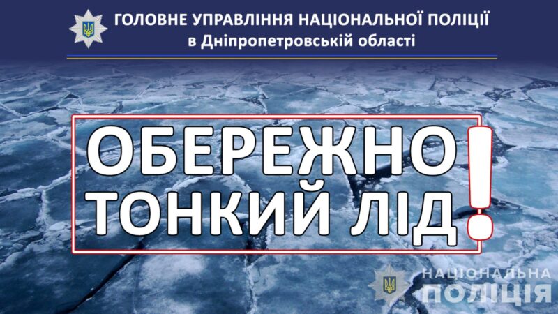 Поліція Дніпропетровщини звертається до жителів регіону. Правоохоронці застерігають громадян від виходу на лід у період нестійких температур. Це є смертельно небезпечним! Останнім часом спостерігаються часті зміни погоди, що спричиняють руйнування крижаного покриву на водоймах. Навіть якщо лід здається міцним, він може бути крихким і не витримати ваги людини.Чому це небезпечно? Лід може бути нерівномірним: на одному місці він товстий, а за кілька метрів – надзвичайно тонкий.Найнебезпечніші ділянки – це місця з течією, біля мостів, очерету та біля берега. Перебування на льоду дітей без нагляду дорослих є надзвичайно небезпечним! Випадки провалу людей під лід стаються через нехтування елементарними правилами безпеки.