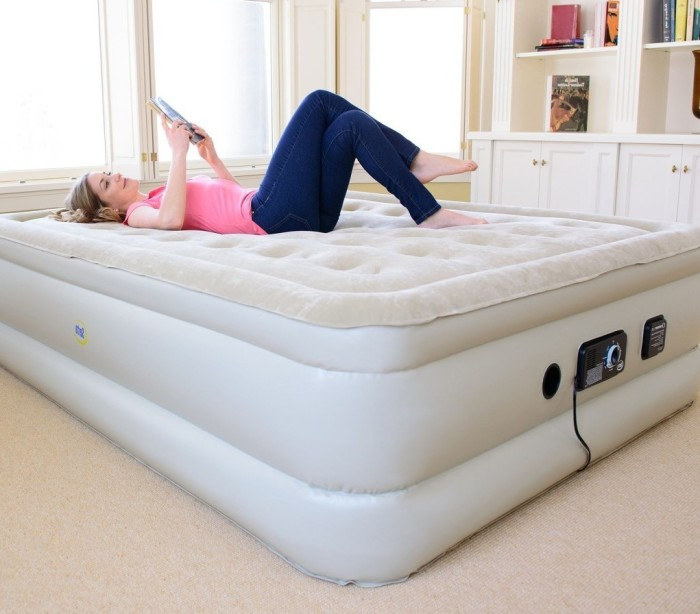 Такой матрас пригодится и на даче, и в день приезда гостей, и в походе, и на пляже. Некоторые надувные матрасы дополнены подставкой для ног и надувной спинкой, так что они легко превращаются в кресло.