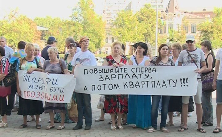 Тарифы ЖКХ – террор против народа! С такими плакатами горожане вышли под стены Днепропетровского городского совета. Митингующие уверены – власть их обворовывает, заставляя оплачивать астрономические суммы за некачественные коммунальные услуги. Вместе с горожанами пикетировали чиновников и активисты «Коммунального контроля». Общественники убеждены – необходимо создать специальную комиссию и выяснить составляющую цен на «коммуналку».