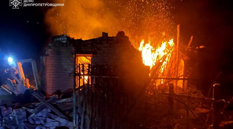 Уночі агресор здійснив атаку БпЛА по Васильківській та Роздорській селищних територіальних громадах Синельниківського району. Повідомили в ДСНС України.