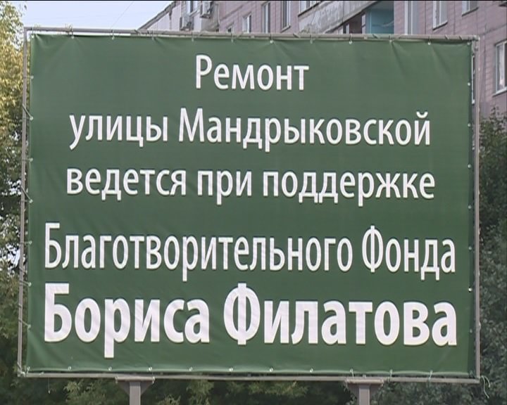 Но совсем недавно на улице начали проводить ремонтные работы, а вдоль дороги появился огромный бигборд с надписью «Ремонт улицы Мандрыковской ведется при поддержке Благотворительного фонда Бориса Филатова».Борд висит, появился он раньше даже, чем рабочие на нашей улице. Теперь ждем ремонта, надеемся,что сделают, что это будут не пустые обещания. А кто там на самом деле ремонтирует, мы не знаем, – говорит местная жительница Екатерина Костюченко.