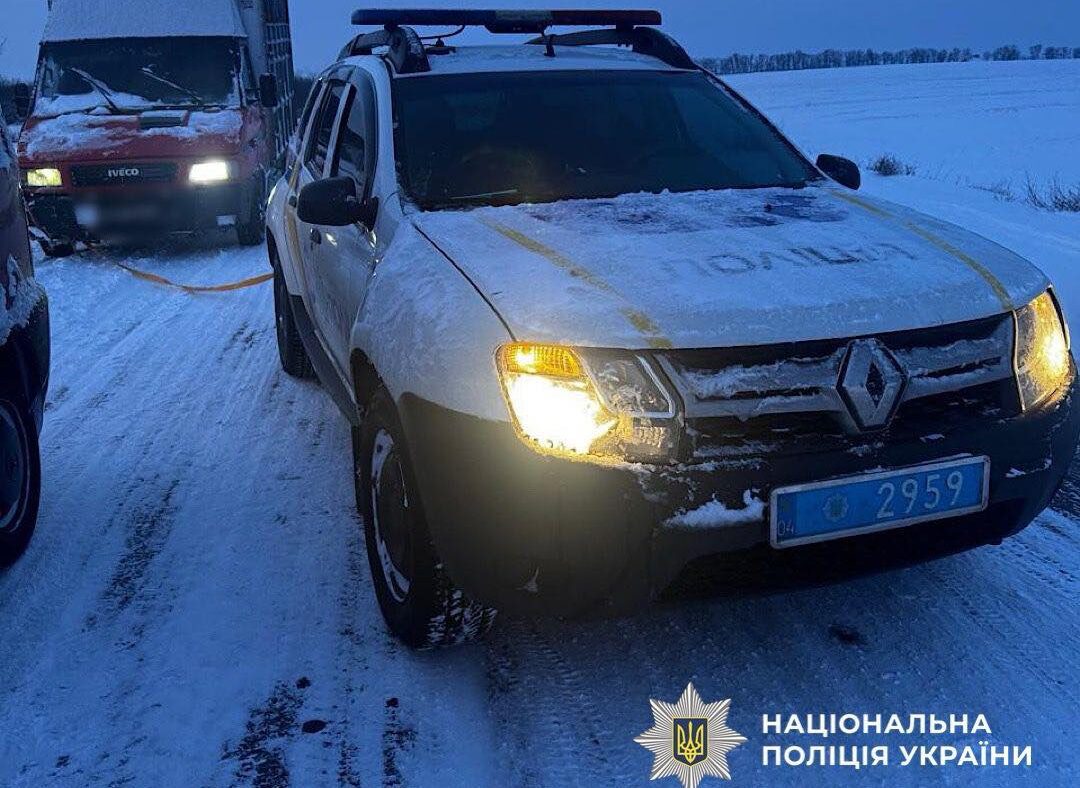 Поліцейський не залишив громадян у скрутній ситуації: зупинився, з’ясував обставини та службовим автомобілем узяв вантажівку на буксир. Завдяки діям правоохоронця водії змогли безпечно дістатися місця проживання.