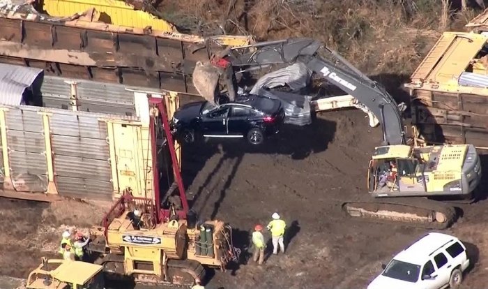 В США поезд, перевозивший в вагонах автомобили BMW, сошел с рельс. В результате аварии пострадали сотни представительских авто.