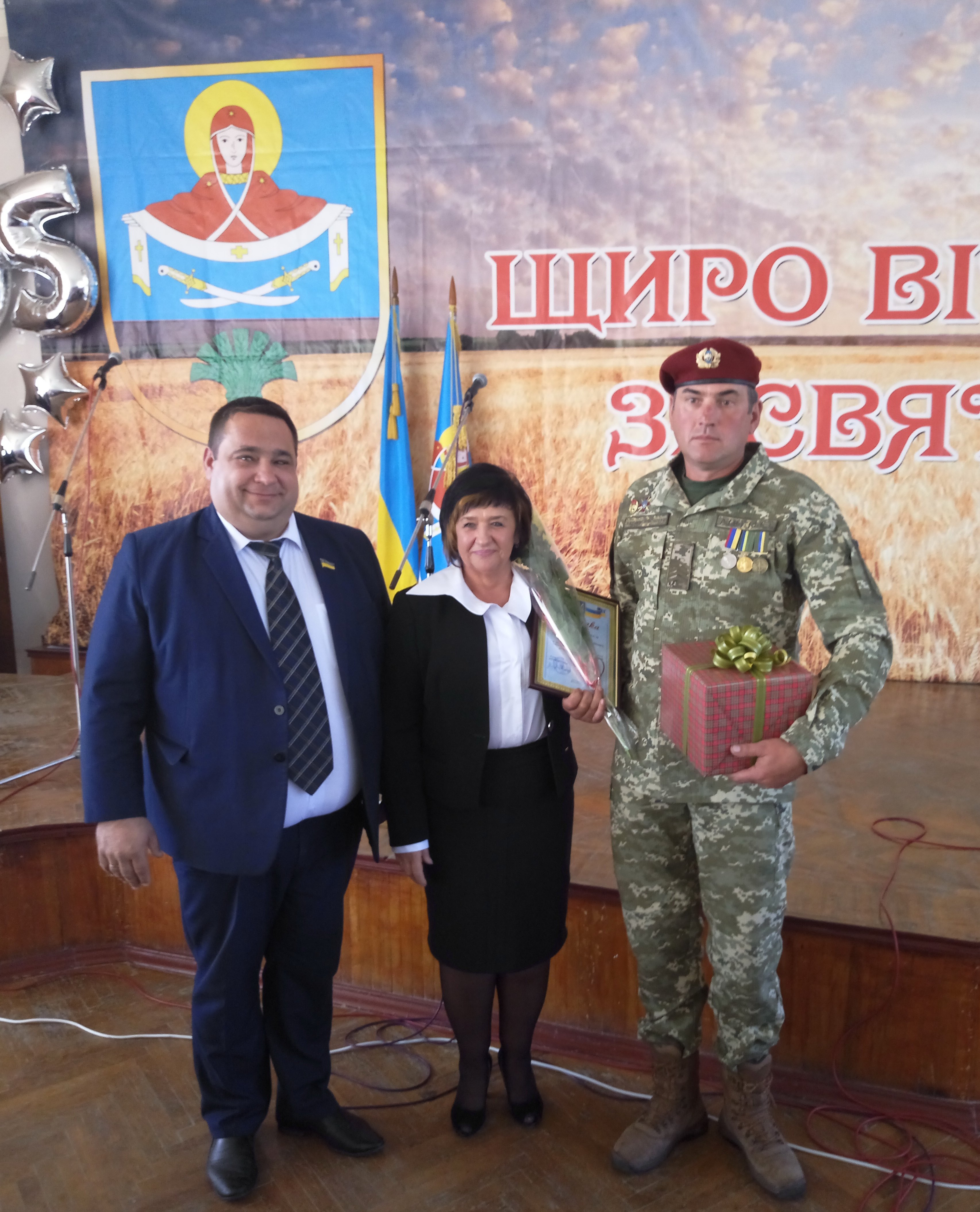 Керівники району привітали і тих земляків, які зараз примножують славу району. За вагомий вклад в розвиток рідного краю та з нагоди 95-річчя утворення району С.Г.Назарчук та О.М.Василенко нагородили подяками та подарунками представників сільгосппідприємств, закладів освіти, приватного бізнесу, ветеранів, учасників АТО.