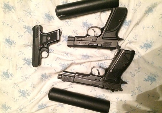 Во время обыска по месту жительства разбойника было изъято 5 пистолетов, 2 глушителя, корпус гранаты РГД-5 и запал к ней, а также 177 патронов калибра 9 мм. Злоумышленник подозревается в разбойном нападении на квартиру по пр. Карла Маркса г. Днепропетровска, во время которого пострадали две женщины. Угрожая им пистолетом, нападающий завладел у них деньгами в сумме 5,5 тыс. гривен и двумя мобильными телефонами.