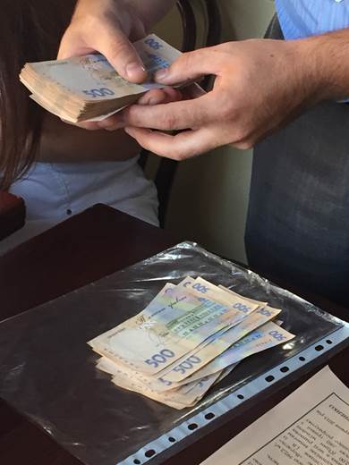 Затримали чиновницю «на гарячому» у Шевченківському районі столиці під час передачі частини грошей – 50-ти тисяч гривень.