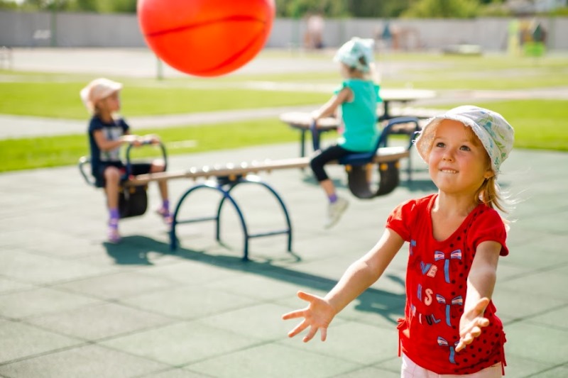 Отдельная локация – спортивная. Для эстафет, игр в футбол и баскетбол. А еще – уголок для изучения правил дорожного движения, со знаками и разметкой.