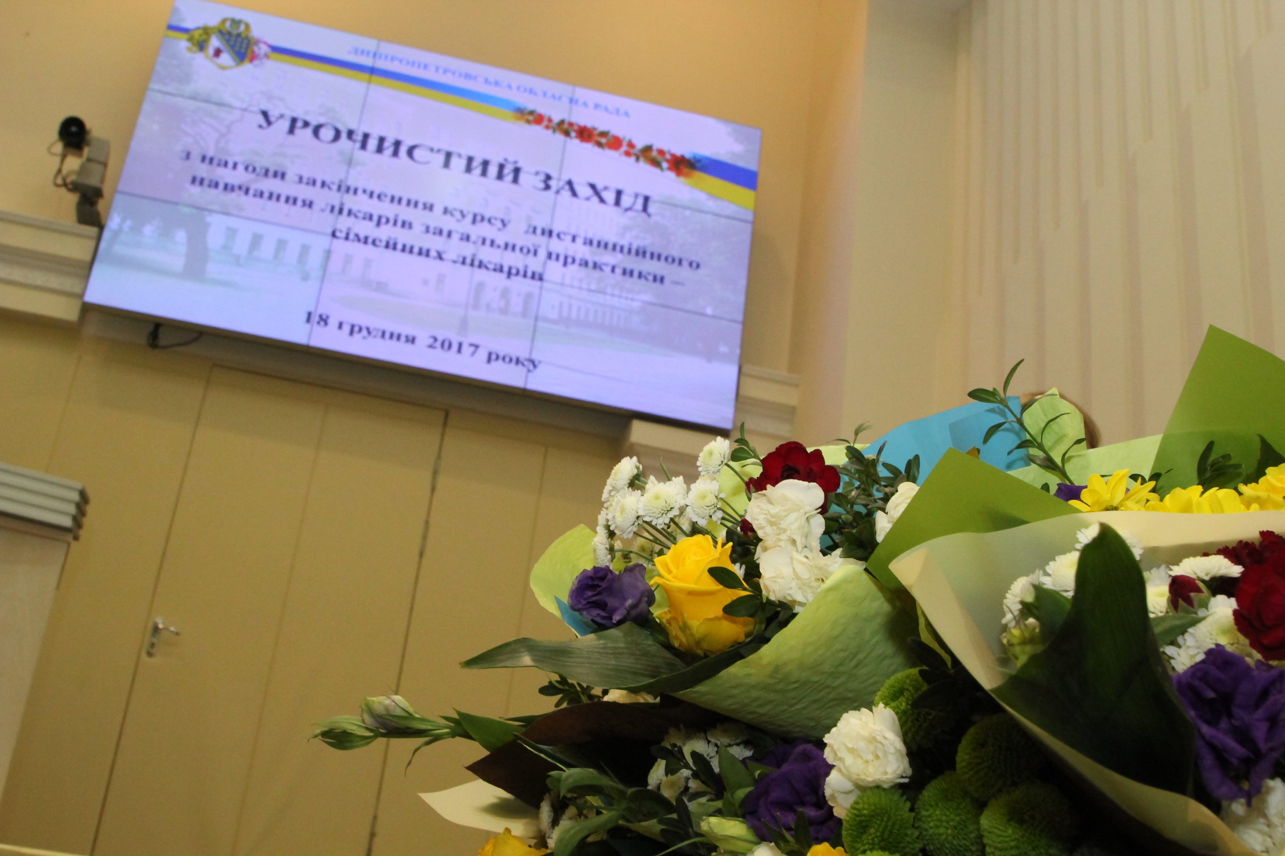 Урочистий захід, присвячений завершенню курсу, проходив у сесійній залі Дніпропетровської обласної ради. Гліб Пригунов привітав усіх учасників проекту з його успішною реалізацією та вручив спеціальні нагороди й грамоти лекторам мед академії та організаторам он-лайн конференцій.