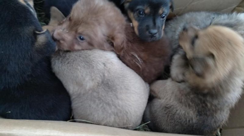 Волонтеры днепровского приюта «Пегас» забрали щенячий букетик. Щенков в завязанном мешке нашли на свалке села. Дачники остановились выбросить мусор и услышали писк.