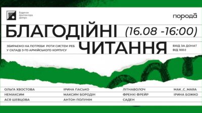16 серпня у Дніпрі в Будинку Архітектора відбудеться благодійний літературний вечір за участі авторів з Дніпра, Кривого Рогу, Харкова та Києва.
