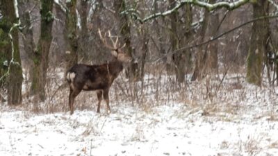 У засніжених лісах Дніпропетровщини можна зустріти справжнього гостя зі Сходу — японського оленя. Колись ці тварини мешкали виключно у Східній Азії, однак з часом адаптувалися до українських природних умов і нині впевнено почуваються серед місцевих лісових масивів.