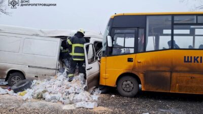 Сьогодні зранку на автошляху «Стрий — Луганськ — Ізварине», поблизу села Саксагань Кам’янського району, сталася масштабна дорожньо-транспортна пригода. До Служби порятунку повідомили про зіткнення шкільного автобуса «ЗАЗ» та автомобіля «Volkswagen Transporter».