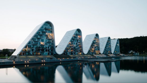 У данському місті Вайле презентували незвичний житловий будинок у вигляді хвилі. Проект будівлі, яка вражає з першого погляду, розробили місцеві архітектори з бюро Henning Larsen Architects.