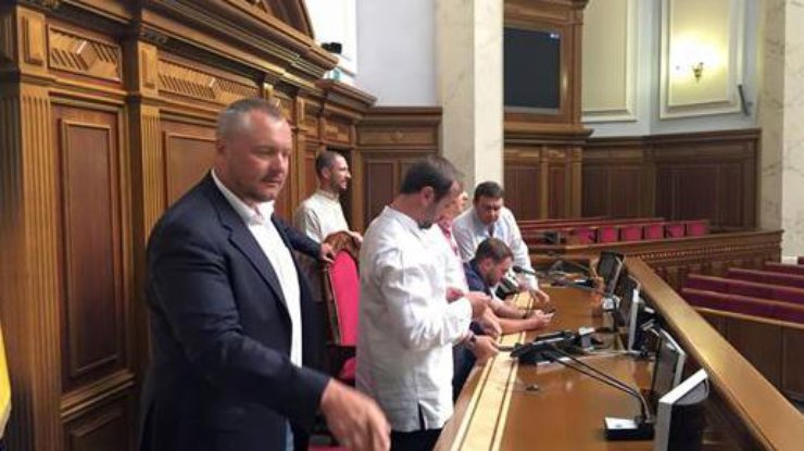 “Заблокировали трибуну Верховной рады. Призываем депутатов-патриотов присоединяться. Остановим антиконституционный мятеж вместе”, – написал он.