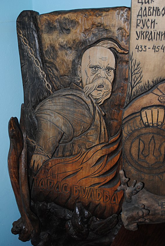Далі крокуємо на північ і потрапляємо… на Полісся. Будинки тут дещо різняться від наддніпрянських – вони повністю зроблені з дерева, часто зовсім не мазані й рідко криті соломою. Привертають увагу різьблені крокви, що на кожній хатині мають особливі візерунки. Всередині домівок: глечики, ступи, кадуби, сокири, кошулі (сорочки) тощо. Виглядаємо в вузеньке віконечко: вдалечині за садочком видніється дерев’яна церква, поруч із нею – складена з колод дзвіниця, за ними – цвинтар.