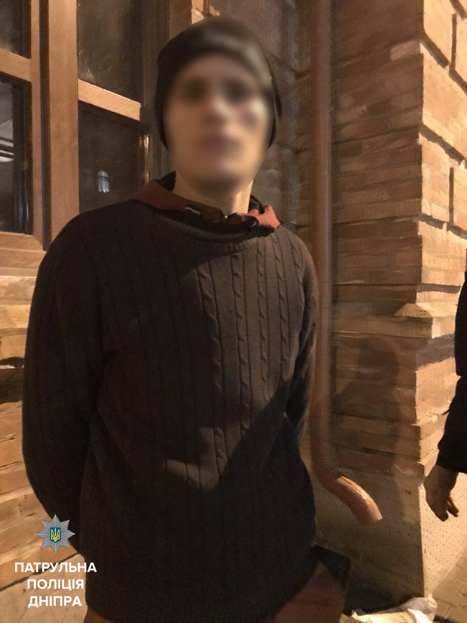 По спецлінії 102 зателефонував 18-річний хлопець і повідомив, що щойно на Катеринославському бульварі кілька молодих людей у нього відібрали телефон та портативний підсилювач. Патрульні прибули за вказаною адресою та зустрілися із заявником. Той повідомив їм прикмети нападників та вказав куди вони попрямували, зазначають у прес-службі поліції.