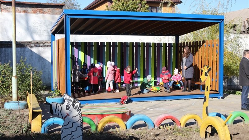 Так, за вересень замість старої небезпечної альтанки у міському дитячому садку № 308 спорудили абсолютно нову. Стеля, стіни і підлога у ній з міцного дерева, всередині – маленький столик і зручні лавки. Одну з шести старих альтанок довелося знести, оскільки вона була небезпечна для дітей. На її місці з якісних сучасних матеріалів побудували нову ігрову зону за принципом, наближеним до фінського формату облаштування дитячих майданчиків. Ніякого пластику, тільки металевий каркас і натуральне дерево.