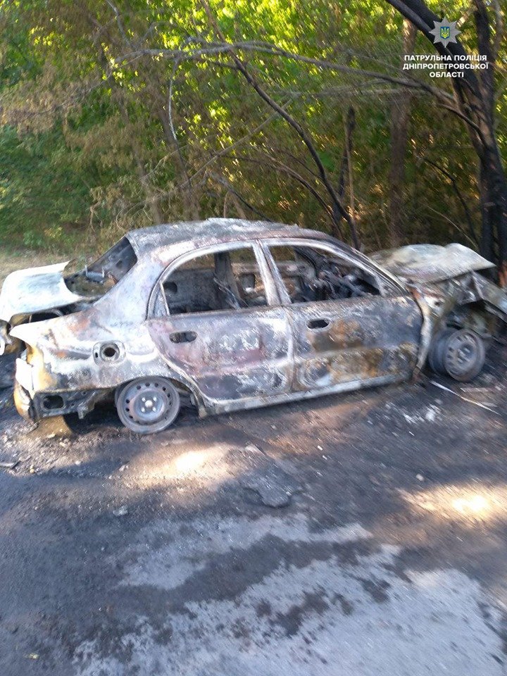 У Дніпрі авто врізалося в дерево і спалахнуло (Фото)