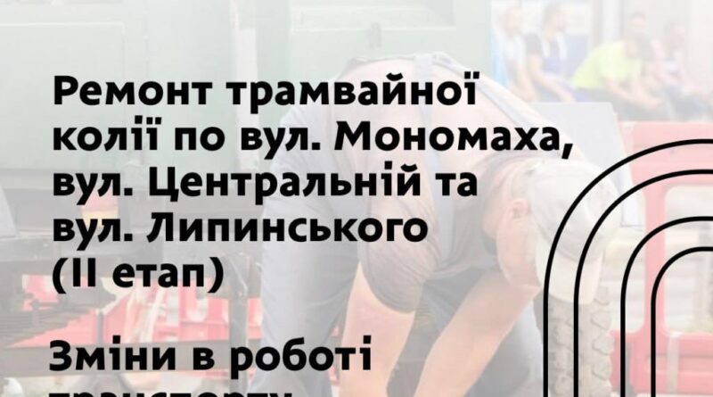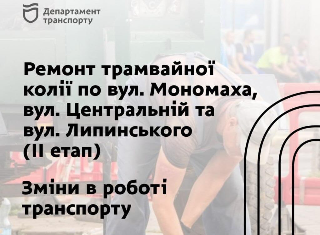 У зв’язку з початком другого етапу модернізації трамвайної лінії по вул. Володимира Мономаха, вул. Центральній та вул. В’ячеслава Липинського продовжать діяти зміни у русі трамваїв: