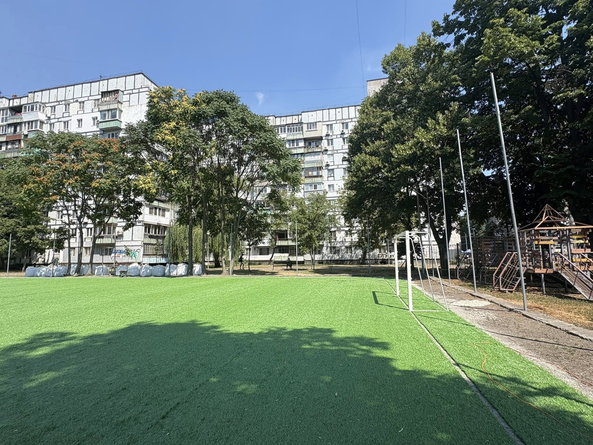 У Дніпрі триває оновлення спортивної інфраструктури в сквері Янгеля — одному з найвідвідуваніших місць відпочинку міста. Тут реконструюють футбольне поле, яке щодня збирає любителів активного дозвілля.