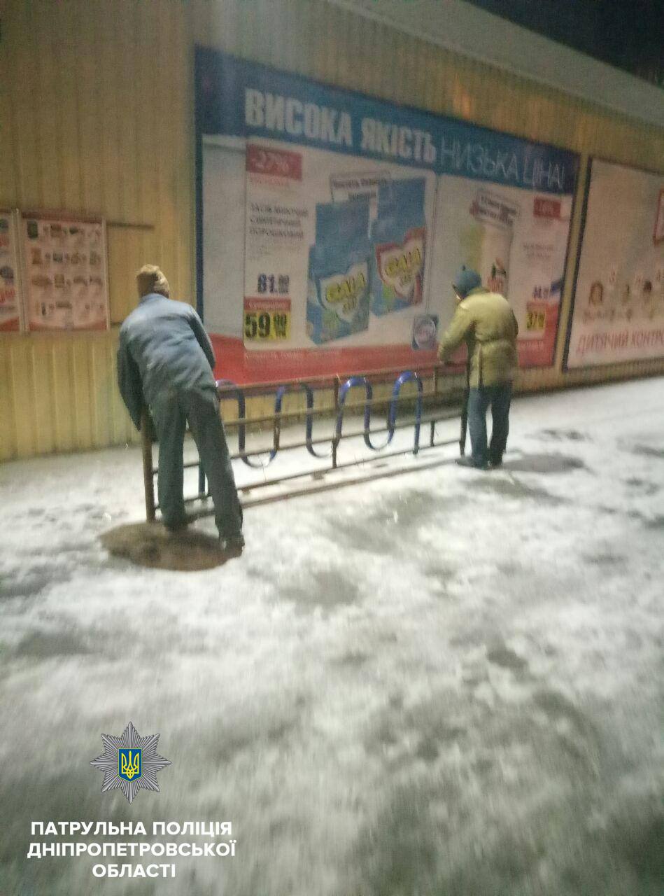 Ще двох любителів металевих парканів затримали на вулиці Калиновій. Близько 3-ї години ночі поліцейські помітили невідомих, які несли секцію огорожі з велопарковкою та не змогли пояснити, де вони її взяли. На місце події інспектори викликали слідчо-оперативну групу. Осіб затримали та доставили до Амур-Нижньодніпровського відділку поліції.