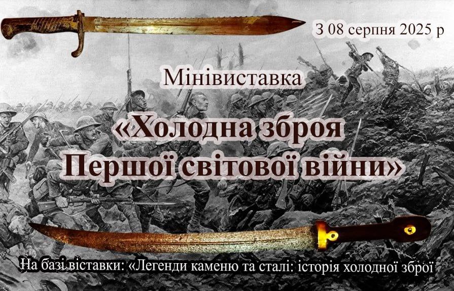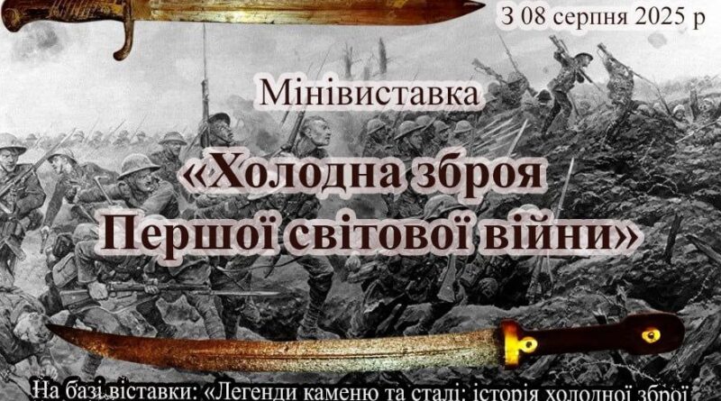 На виставці представлені предмети ближнього бою — багнети, шашки, тесаки, а також лопати, кийки та каски, які активно застосовувалися на фронтах. У музейних матеріалах акцент зроблено на порівнянні ролі холодної зброї та вогнепальних зразків у ході воєнних дій.