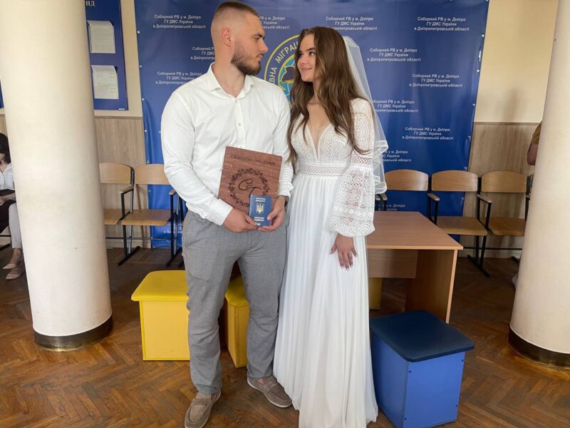 Непересічна подія сталася в останній день літа в Соборному відділі в м. Дніпрі ГУ ДМС у Дніпропетровській області. Молоде подружжя, яке уклало шлюб в цей день, одразу після урочистої церемонії, саме у весільному вбранні, завітало до відділу Міграційної служби, щоб на нове прізвище нареченої одночасно оформити і ID-картку, і паспорт громадянина України для виїзду за кордон. Розповіли на офіційній ФБ-сторінці Міграційної служби Дніпропетровської області.