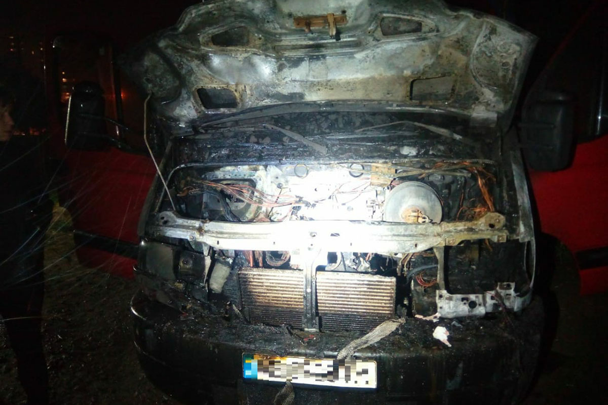 Вогнем пошкоджено моторний відсік, лобове скло, панель приладів та капот транспортного засобу.