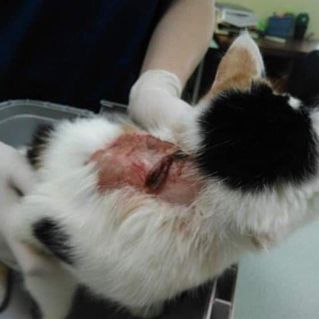 «Нещасна, нікому у світі непотрібна кішечка, страждає від страшних ран на спині. Безвідповідальні господарі, обваривши маленьку окропом, навіть не звернулися до лікарні, щоб позбавити власну кішку болю та якнайшвидше вилікувати. Результат – опіки шкіри, що не лікувалися та призвели до запалення і розвитку інфекції. Про те, які страждання витримало кошеня, навіть неможливо й уявити», – розповідають волонтери «Верности».