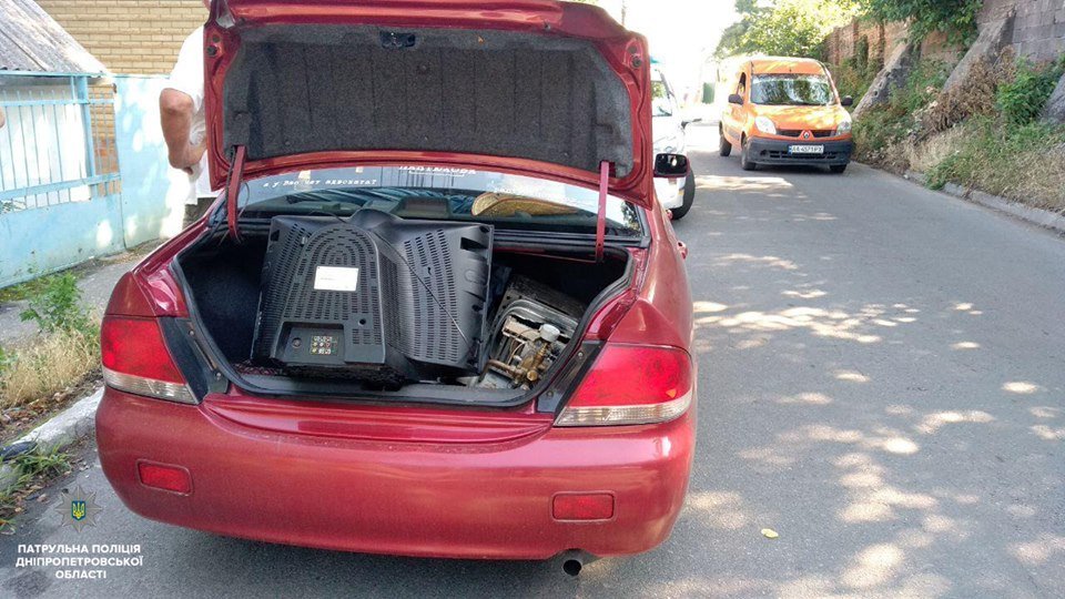 19 липня, близько 9-ї години ранку спецлінії 102 про незаконне проникнення до житла по вулиці Канатній у Дніпрі. Патрульні оперативно прибули за вказаною адресою і виявили заявника, який розповів, що власників будинку вдома немає, а в ньому перебувають невідомі. На воротах були видні сліди проникнення. Біля будинку стояв автомобіль із шашкою таксі Mitsubishi, а в його багажнику лежав телевізор та водонагрівач. Повідомляють у прес-службі патрульної поліції Дніпра.