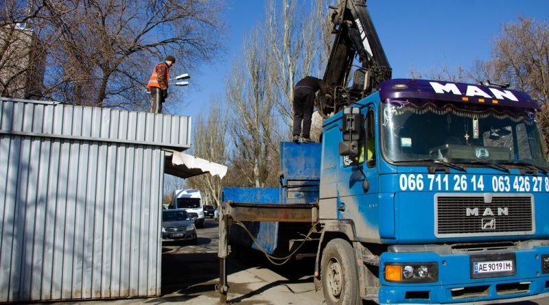 У Дніпрі комунальники прибрали незаконно встановлену споруду на вулиці Пилипа Орлика, 3. Попри правила дорожнього руху, кіоск стояв на повороті дороги та закривав огляд водіям., Кіоск встановили близько двох тижнів тому, але весь час він був зачинений. Повідомляють у прес-службі міської ради.