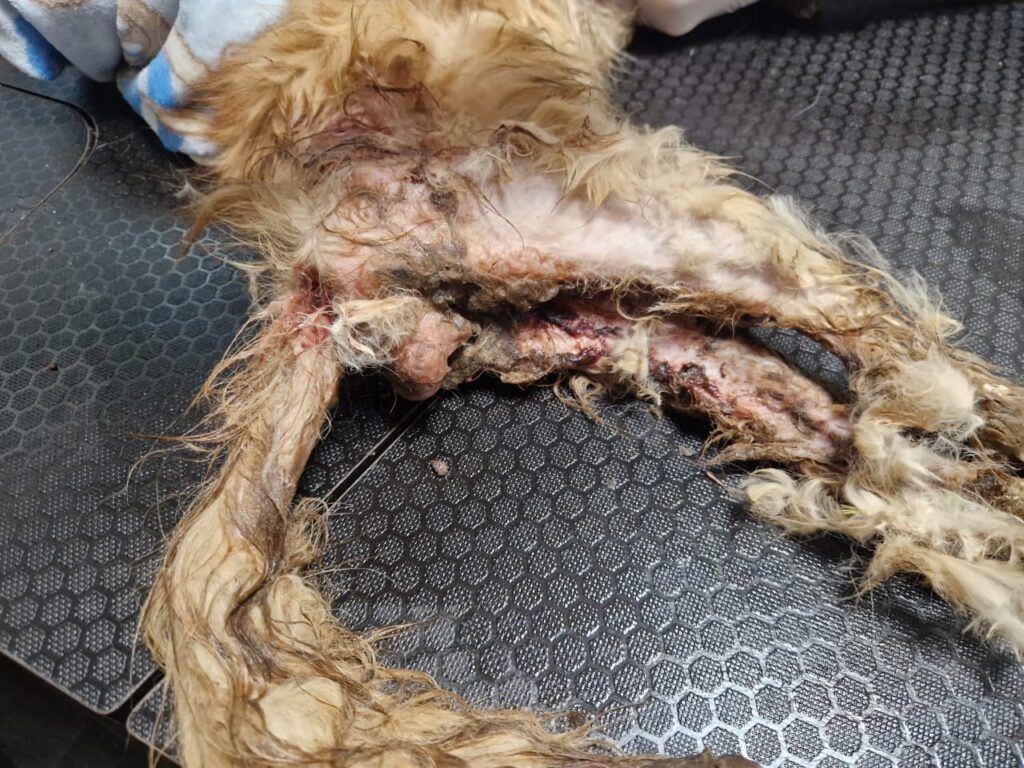 У Дніпрі котик майже два тижні ховався після нападу собак і сильної травми. Дівчата нарешті змогли його спіймати в підвалі. Він дуже агресивний, та це й зрозуміло, йому сильно болить. Худий, понівечений, але продовжує захищатись, бо вже не чекає добра.