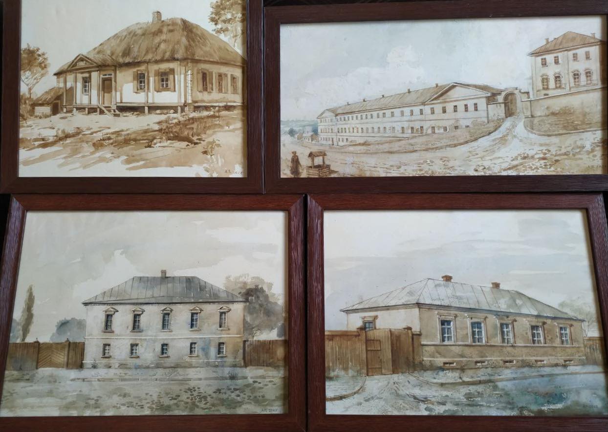 Твори були частиною виставки «Яворницький: на шляху до історії козацтва», що експонувалася впродовж 2025 р. у музеях Харкова, Дніпра, Києва. Це – 4 картини, де на основі описів і зображень з різних джерел здійснено художню реконструкцію будівель, які були місцем перебування Дмитра Яворницького: батьківська хата в с. Сонцівка, Харківське духовне училище, будинки Миколи Сумцова і Олександра Потебні в Харкові.