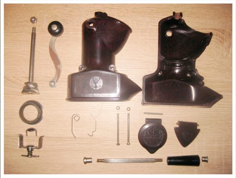 Також спеціалісти розповіли трохи про фірму… У 1869 році Петер Дінес об’єднав дві компанії в одну – PeDe. З 1899 року кавомолки цієї компанії почали продаватися не тільки в країнах Європи, але й в США. В 1935 році корпуси кавомолки почали виготовляти з бакеліту (фенольна смола). Такі кавомолки отримали назву “модель 411” і виготовлялася в період з 1935 по 1937 роки. Корпус виготовлений з мармурового червоно-коричневого бакеліту з фіксованою пластиковою боковою ручкою та нікельованим шатуном, яка закінчується дерев’яною набалдашником. Жолоб для меленої кави в нижній частині з клапаном.