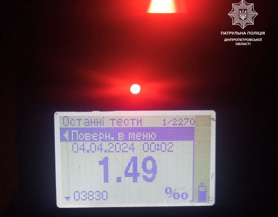 Водій пройшов освідування у встановленому законом порядку за допомогою Драгеру. Результат підтвердив, що він нетверезий — 1,49 проміле алкоголю в його крові. На чоловіка склали протоколи за ч.1 ст.130 (Керування у стані сп’яніння) та ч.3 ст.126 (Керування транспортним засобом особою, стосовно якої встановлено тимчасове обмеження у праві керування) КУпАП.