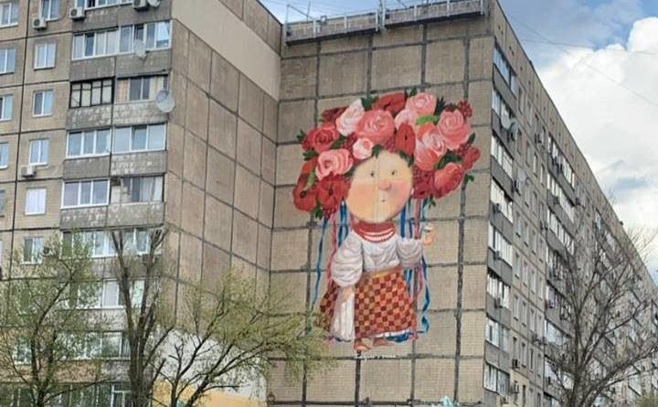 На лівому березі Дніпра з’явився мурал за мотивами картини Євгенії Гапчинської. Дівчинка у віночку, яка тримає у руці бутерброд із салом, намальована на стіні багатоповерхівки по вул. Калинова, 102. Зазначають у Комунальному підприємстві “Розвиток Дніпро”.