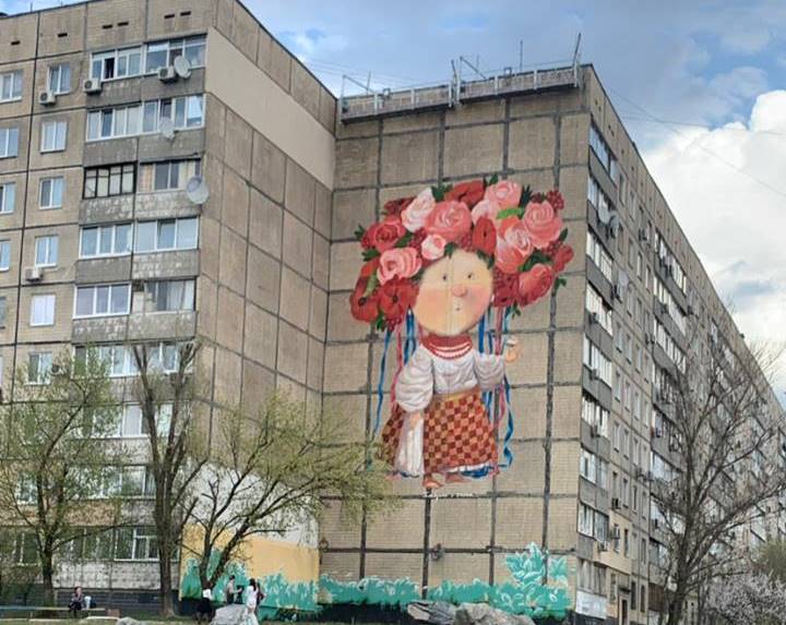 На лівому березі Дніпра з’явився мурал за мотивами картини Євгенії Гапчинської. Дівчинка у віночку, яка тримає у руці бутерброд із салом, намальована на стіні багатоповерхівки по вул. Калинова, 102. Зазначають у Комунальному підприємстві “Розвиток Дніпро”.