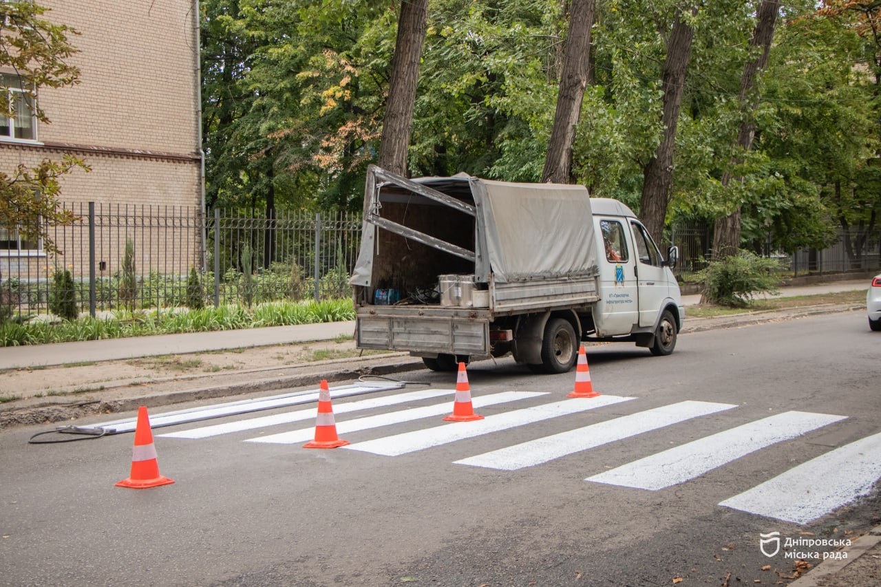 Роботи тривають у всіх районах Дніпра — як на нових дорогах, так і на тих, де маркування потребує оновлення. До нового навчального року в місті планують відновити 130 «лежачих» поліцейських, 27 км ліній дорожньої розмітки пластиком, понад 500 км розмітки фарбою та 3000 кв. м пішохідних переходів. Наразі виконано вже понад 80% запланованого.