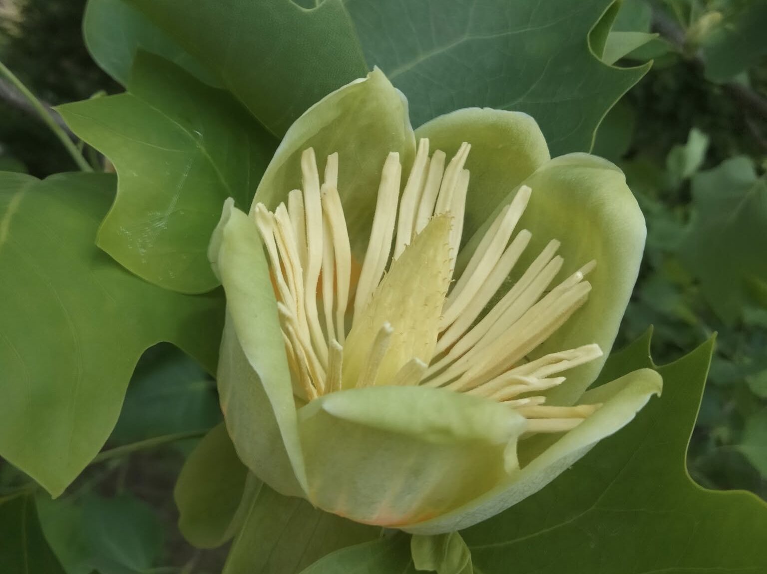 У ботанічному саду Дніпровського національного університету почало квітувати тюльпанове дерево (ліріодендрон). Таку назву воно носить не випадково. Адже квіточки за своєю формою нагадують тюльпани. Світлинами квітування поділився директор ботанічного саду Анатолій Кабар.