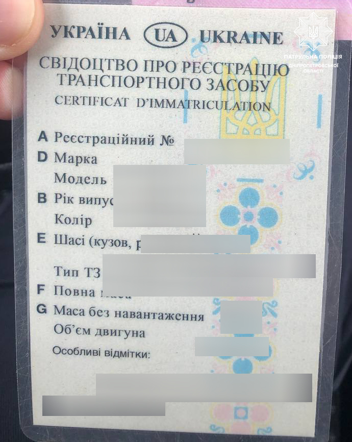 Днями патрульна поліція Дніпра зупинила у Новокодацькому районі автомобіль Renault. Чоловік за кермом надав для перевірки документи. Інспектори помітили ознаки підробки свідоцтва про реєстрацію транспортного засобу.