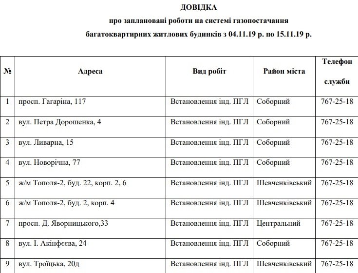 У Дніпрі 4 по 15 листопада під час виконання робіт на внутрішньобудинкових системах газопостачання у домоволодіннях може бути тимчасово призупинено. Про це інформує АТ “Дніпрогаз”. Газу планують відключити за такими адресами.