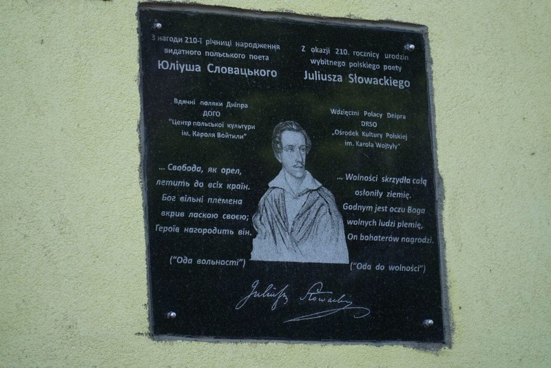 У Дніпрі у будівлі Університету імені Альфреда Нобеля відкрили меморіальну дошку на честь великого польського поета і драматурга ХІХ століття, який народився в Україні, Юліуша Словацького. На дійство запросили аташе Генерального консульства Республіки Польща.