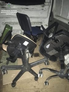 25 липня, близько 3-ї години ночі на вулиці Робочій у Дніпрі патрульні помітили трьох невідомих, які несли в руках офісні стільці. Поліцейські прослідкували за ними, і побачили, що чоловіки складають їх до автомобіля Nissan Primastar. Повідомляють у прес-службі поліції Дніпра.