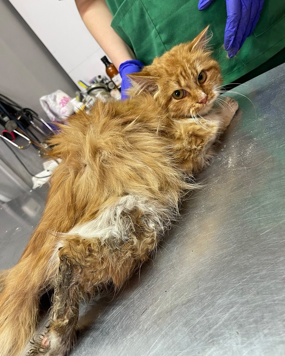 У Дніпрі котику Фоксіку не пощастило, не встиг сховатися від собаки. Сильно покусаний. Не стає на задні лапки. Волонтери боялися, що постраждав хребет. Але лікарі дають надію, бо є чутливість у лапках.