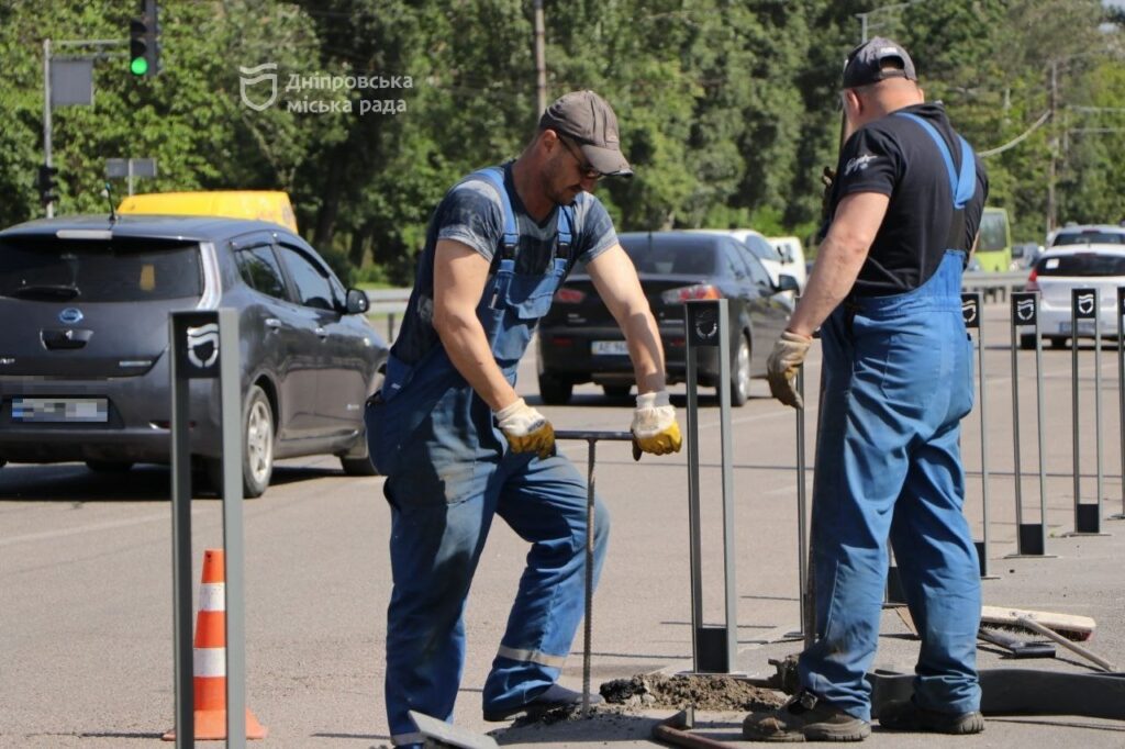 У Дніпрі встановлюють нові обмежувальні стовпчики (Фото)