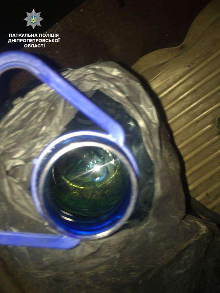23 серпня, близько 2-ї години ночі патрульні помітили на проспекті Мануйлівському невідомого, який стояв біля автомобіля ВАЗ 2105 з 6-літровою пластиковою пляшкою з невідомою рідиною. Патрульні підійшли, аби перевірити підозрілого громадянина. Як виявилося, в нього у пляшці був бензин. Під час поверхневої перевірки в салоні автомобіля поліцейські виявили гумовий шланг, а в багажнику – кришку від паливного баку чужого авто. Повідомляють у прес-службі патрульної поліції Дніпра.